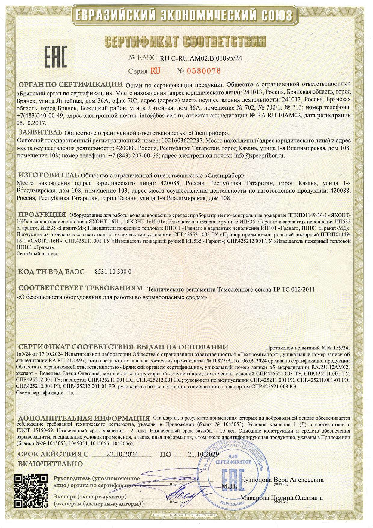 Предназначен для установки во взрывоопасных зонах класса 0 и ниже по ГОСТ Р 51330.9, и включается в искробезопасные шлейфы сигнализации приборов серии Яхонт И или других ППКП, искробезопасные электрические цепи которых имеют параметры, позволяющие подключать данный извещатель.
