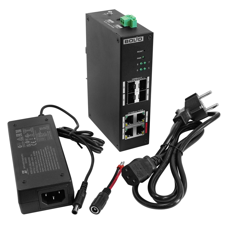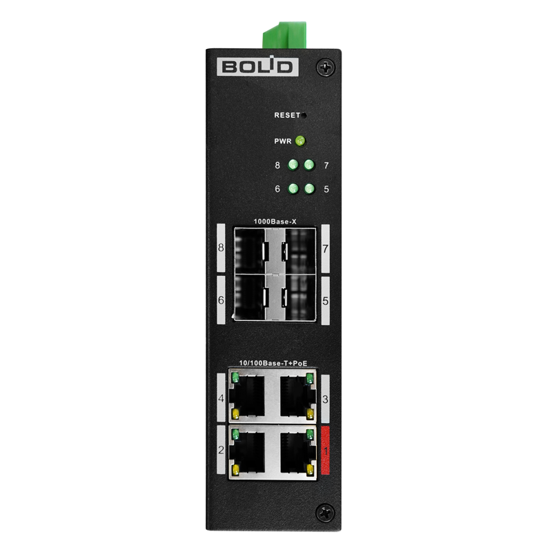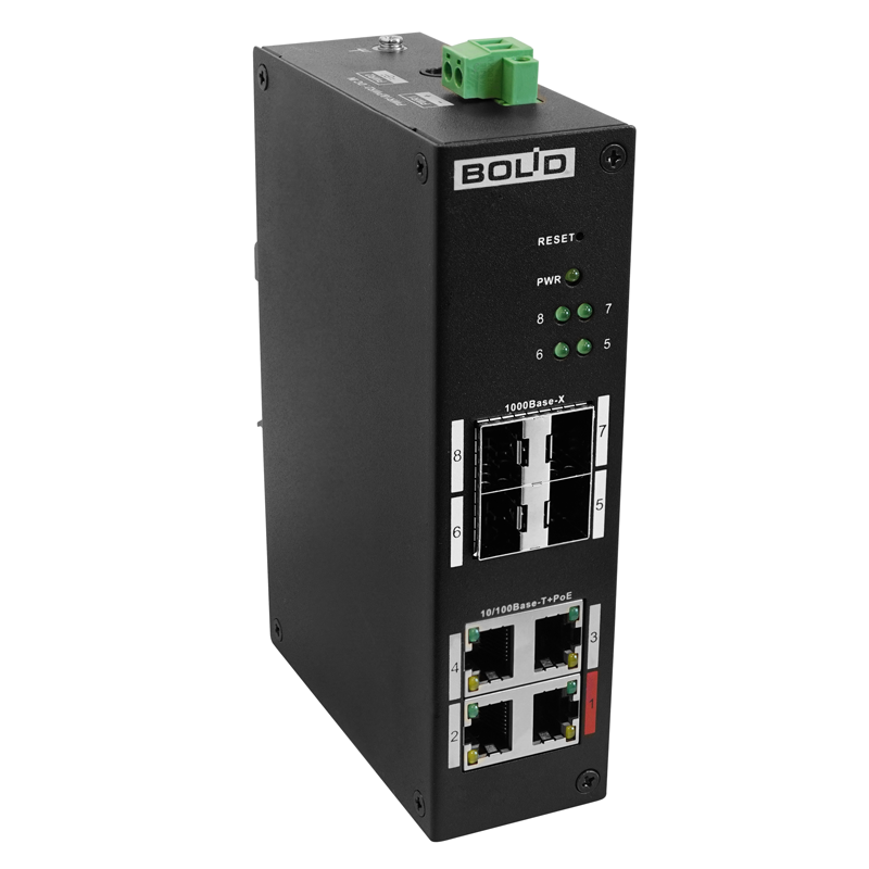 • 4 порта SFP 1000 Мбит/с, 4 порта RJ-45 10/100 Мбит/с (PoE)